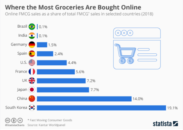 전세계에서 그로서리(식품 잡화)를 이커머스로 젤로 많이 사재끼는 나라가 어디게여? ㅋㅋㅋ 네에에~~ 그거슨 대한민국이었던 거십니다 여러부우운~!
